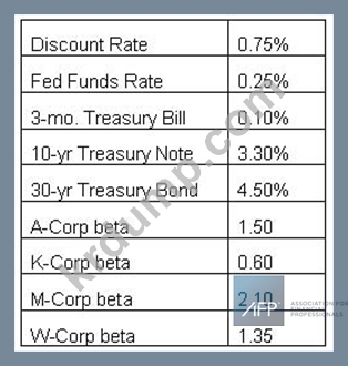 미국 주식 시장의 역사적 수익률은 8%입니다. 투자 포트폴리오는 40% A-Corp 주식, 30% K-Corp 주식, 10% M-Corp 주식 및 20% W-Corp 주식으로 구성된 지분 투자가 혼합되어 있습니다. 투자 포트폴리오 관리자는 평균 3년 동안 주식 투자 포지션을 사고 보유하는 경향이 있습니다. 이 투자 포트폴리오에 필요한 수익률을 계산하기 위해 표의 어떤 이자율을 무위험 이자율로 사용할 것입니까?
