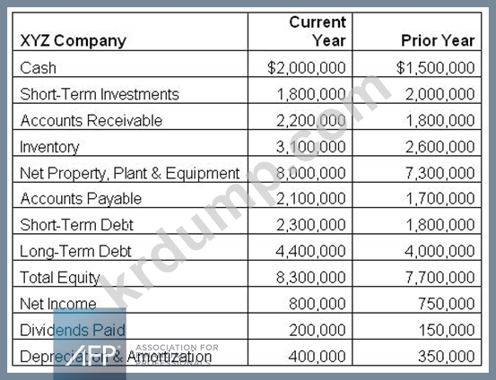 이 질문에 답하려면 전시회에 있는 XYZ 회사의 재무제표를 사용하십시오.