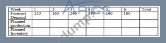 노동 계약으로 인해 회사는 1교대로 주당 100단위 또는 2교대로 주당 200단위의 생산에 필요한 충분한 노동력을 고용해야 하며 고용, 정리해고 또는 초과 근무를 할당할 수 없습니다. 네 번째 주에는 다른 부서에서 추가 교대조(최대 100단위)의 일부 또는 전체를 일할 수 있습니다. 두 번째 주에 유지 보수를 위해 계획된 셧다운이 있어 생산량이 절반으로 줄어들 것입니다. 생산 계획을 수립합니다. 개시 재고는 200개, 희망 종료 재고는 300개입니다.