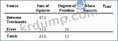 아래 ANOVA 표의 경우 Fcal 통계량은 무엇입니까?