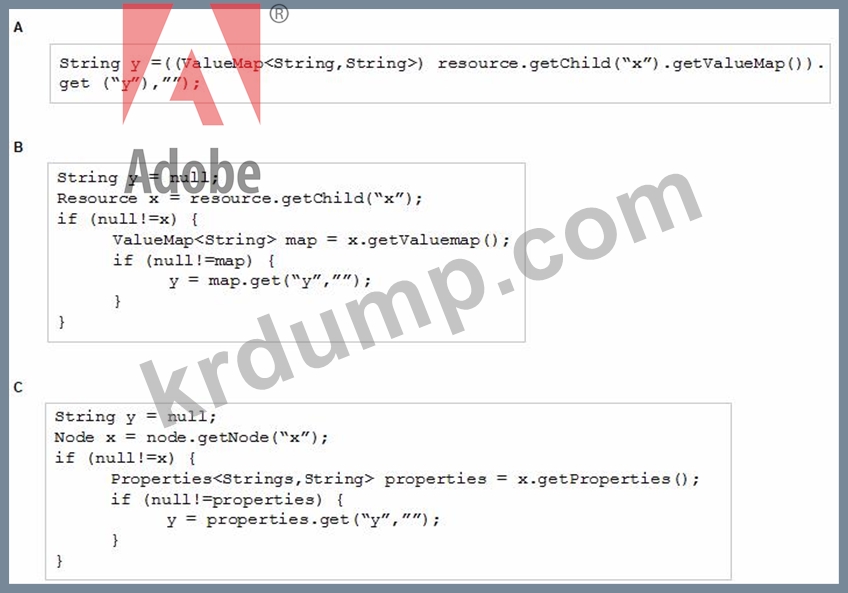 개발자가 사용자 지정 메서드를 만들고 있습니다. 이 메서드는 자식 x에서 String 속성 y를 반환해야 합니다. 메서드는 Sling API만 사용해야 합니다.