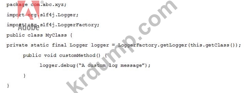 개발자는 Java 패키지 com.abc.xyz용 OSGi 웹 콘솔에서 디버그 수준으로 custom.log라는 사용자 정의 로그를 생성합니다.