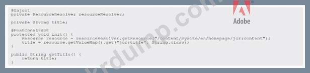 개발자가 Sling 모델이 리소스에 제대로 적응하지 못하는 문제를 디버깅하고 있습니다. 조사 결과, 개발자는 다음과 같은 Sling 모델 코드를 발견했습니다.