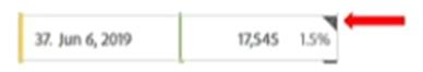 웹 분석가가 Analytics의 Workspace 자유 형식 테이블에서 보고서를 보고 있는데 짙은 회색 삼각형이 보입니다.