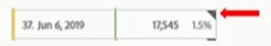 웹 분석가가 Analytics의 Workspace 자유 형식 테이블에서 보고서를 보고 있는데 짙은 회색 삼각형이 보입니다.