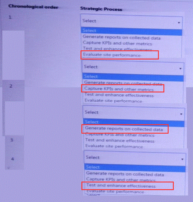 1(위)에서 4(아래)까지 시간순으로 새 웹사이트에 긍정적인 변화를 주기 위해 수행할 단계는 무엇입니까?