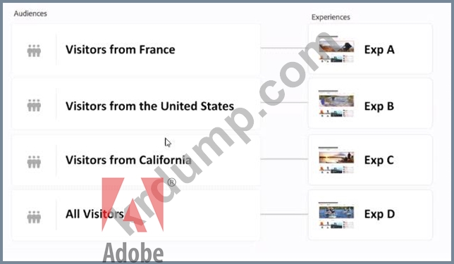 엔터테인먼트 사이트는 지리적 위치별로 활동 대상을 타겟팅하는 경험을 실행하고 있습니다. 참가자 프랑스는 Exp A를 보았습니다.