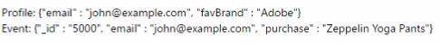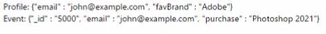 이벤트: {''_id": '5000". "이메일": "[email protected]". "purchase": "Photoshop 2021") 프로필 [email protected]을 수행할 때 프로필 속성과 이벤트는 어떻게 보입니까?