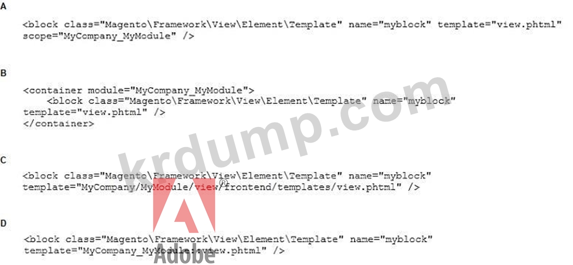 레이아웃 XML에서 view.phtml이라는 템플릿을 사용하여 \Magento\Framework\View\Element\Template 유형의 블록을 선언하려고 합니다.