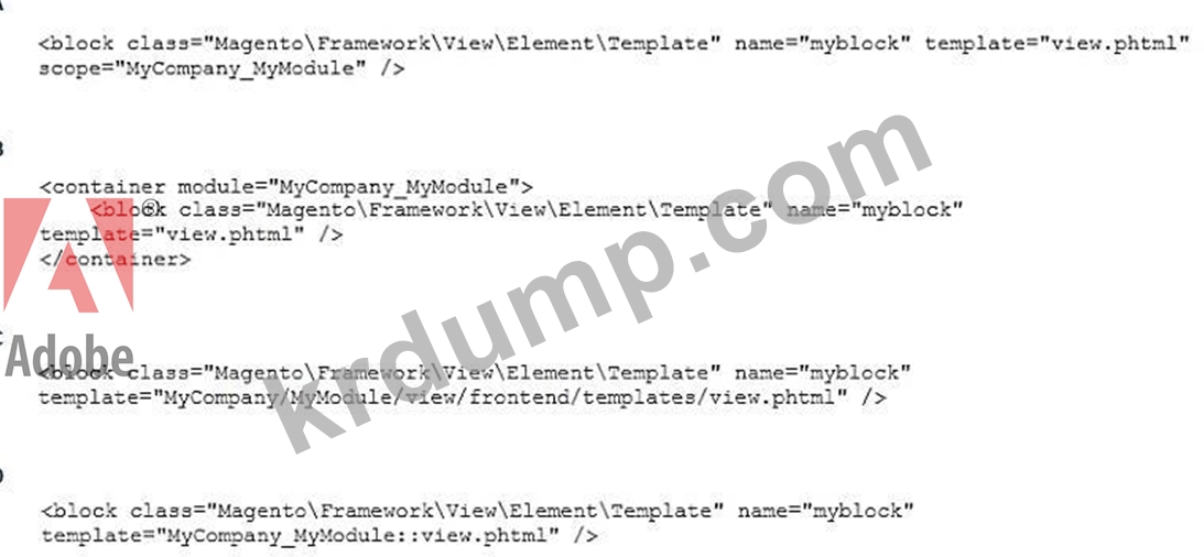 레이아웃 XML에서 view.phtml이라는 템플릿을 사용하여 \Magento\Framework\View\Element\Template 유형의 블록을 선언하려고 합니다.