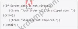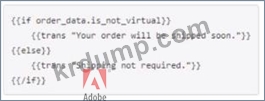 Adobe Commerce 개발자는 주문 유형이 가상인지 여부에 따라 조건부 정적 메모를 추가해야 합니다. 개발자는 이메일 템플릿에 조건부 텍스트를 추가하기 위해 어떤 옵션을 사용합니까?
