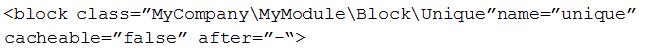 새 블록을 만들었으며 모든 페이지에 이 블록을 추가할 것입니다. 블록에는 사용자별 정보가 포함되어 있으며 캐시할 수 없습니다. 블록은 다음과 함께 default.xml에 추가됩니다.