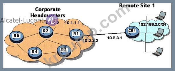네트워크 다이어그램(전시 클릭)을 기반으로 R2는 고정 경로를 사용하여 CR1 뒤에 있는 네트워크에 연결하려고 합니다. 아래 선택 사항에 따라 올바른 구문은 무엇입니까? R1에는 CR1 뒤의 네트워크에 대해 정의된 유효한 정적 경로가 있습니다.