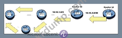 다이어그램에서 R3은 R7에서 시퀀스 번호가 112인 LSA를 수신하여 링크 상태 데이터베이스에 설치합니다. 10ms 나중에 R1에서 시퀀스 번호가 111인 동일한 LSA의 복사본을 받습니다. R3은 R1의 LSA로 무엇을 합니까?