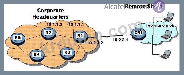 네트워크 다이어그램(전시 클릭)을 기반으로 R2는 고정 경로를 사용하여 CR1 뒤에 있는 네트워크에 연결하려고 합니다. 아래 선택 사항에 따라 올바른 구문은 무엇입니까? R1에는 CR1 뒤의 네트워크에 대해 정의된 유효한 정적 경로가 있습니다.