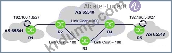 다음 중 라우터 R1과 R2 사이, 라우터 R4와 R5 사이에서 경로를 교환하는 데 사용되는 프로토콜은 무엇입니까?