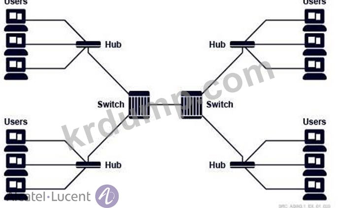 이더넷 LAN(Local Area Network)은 다이어그램에 표시된 구성 요소로 구성됩니다. 이 LAN에 몇 개의 충돌 도메인이 있습니까?