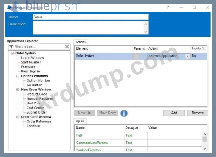 Order System 애플리케이션이 성공적으로 실행되었으며 Blue Prism이 애플리케이션을 다음 화면으로 탐색했습니다.