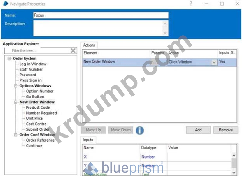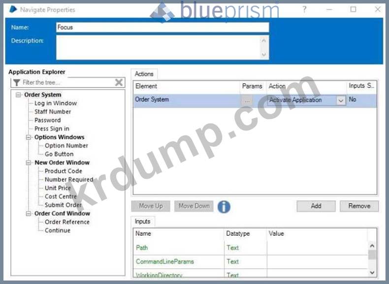 Order System 애플리케이션이 성공적으로 실행되었으며 Blue Prism이 애플리케이션을 다음 화면으로 탐색했습니다.