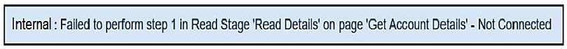 '계정 세부 정보 가져오기'라는 작업이 다음 예외 세부 정보와 함께 실패합니다.