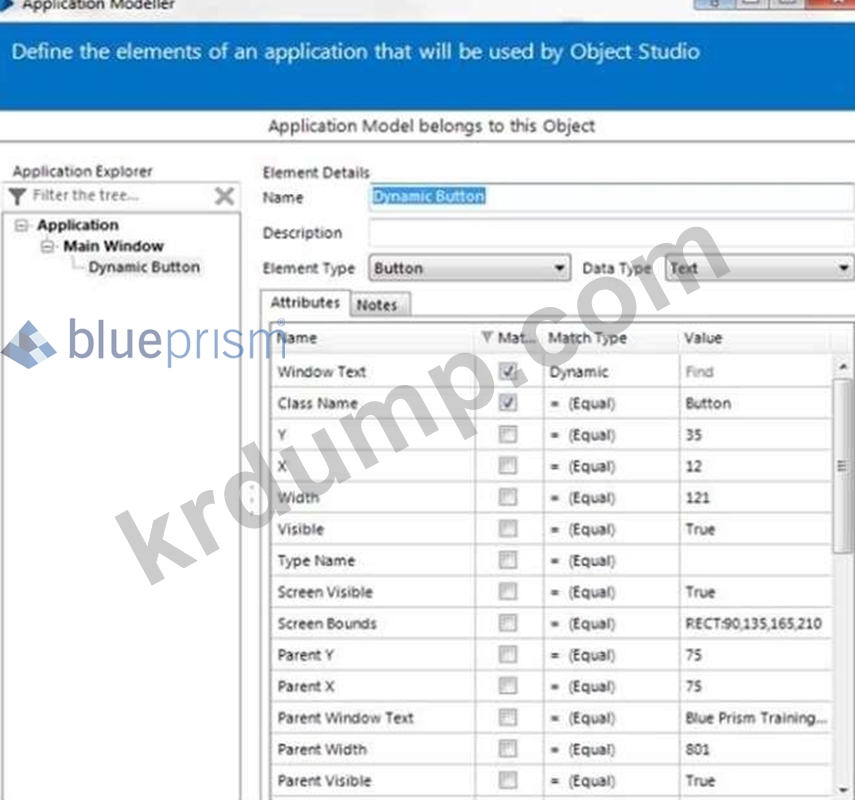 Dynamic Button 요소가 감시되었으며 다음 속성이 설정되어 있습니다.
