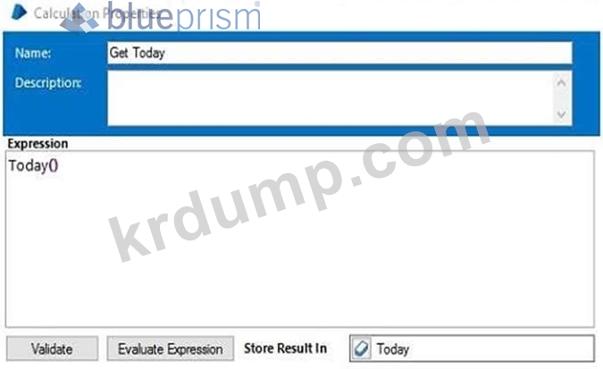 다음 계산 단계에서는 Today 함수를 사용하여 현재 날짜를 날짜 값으로 가져와 "오늘"이라는 데이터 항목에 배치합니다.