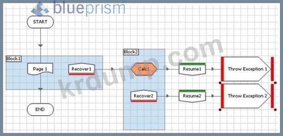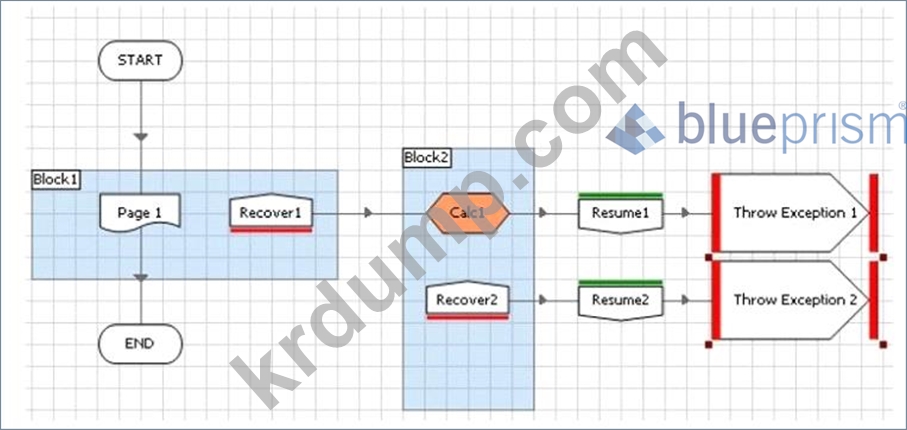 Page1에서 오류가 발생했으며 Recover1 단계에서 복구하기 위해 예외가 버블링되었습니다. Calc1 단계에 오류가 있는 경우 프로세스는 어떤 경로를 사용합니까?