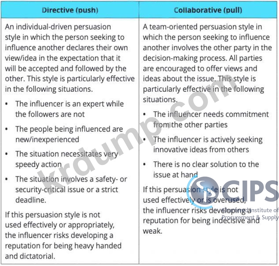 Rose는 스키 장비 소매업체의 수석 구매자입니다. Rose는 현재 스키 부츠 부족과 주요 공급업체의 인보이스 발행 문제에 대해 우려하고 있습니다. Shehas는 공급업체의 CEO인 Victor와 화상 회의를 하기로 결정했습니다. 처음에 그녀는 빅터가 상황을 개선할 수 없다면 계약 해지로 위협할 계획입니다. 그러나 그녀는 전환 비용이 높기 때문에 이 작업을 수행하는 것을 약간 경계합니다. 결국 그녀는 상대방이 자신의 견해와 아이디어를 제시하도록 독려함으로써 해결책을 찾기로 결정합니다. Rose는 또한 Victor와 논의할 몇 가지 아이디어를 준비합니다. 다음 중 Rose가 다음 회의에서 사용하려는 설득 방법은 무엇입니까?