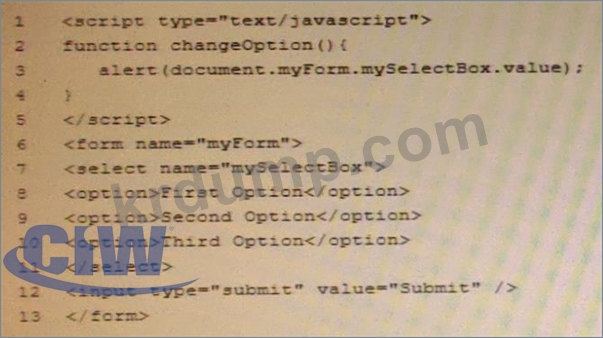 Charies는 사용자가 선택 메뉴에서 옵션을 선택한 후 changeOption 함수를 실행하는 코드를 작성하려고 합니다. 그는 코드를 어떻게 변경해야 합니까?