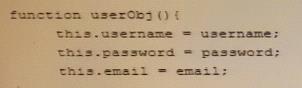 Geraldine은 웹 사이트에 사용자 계정 데이터를 저장할 사용자 정의 개체를 만들고 있습니다. 그녀는 제대로 작동하지 않는 다음 코드를 작성했습니다. 스크립트가 올바르게 실행되도록 하려면 어떻게 변경해야 합니까?