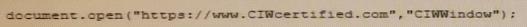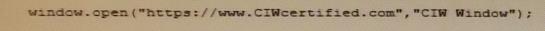 Janice는 새 브라우저 창에서 웹 문서를 여는 팝업 창을 만들어야 합니다. 그녀는 어떤 코드 문을 사용해야 합니까?