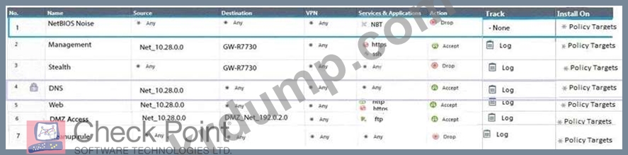 보안 감사를 수행하고 있습니다. 구성 파일 및 로그를 검토하는 동안 POP3 트래픽을 허용하는 로그를 볼 수 있지만 규칙 베이스에서 POP3 트래픽을 허용하는 규칙은 볼 수 없습니다. 다음 중 가장 가능성이 높은 원인은 무엇입니까?