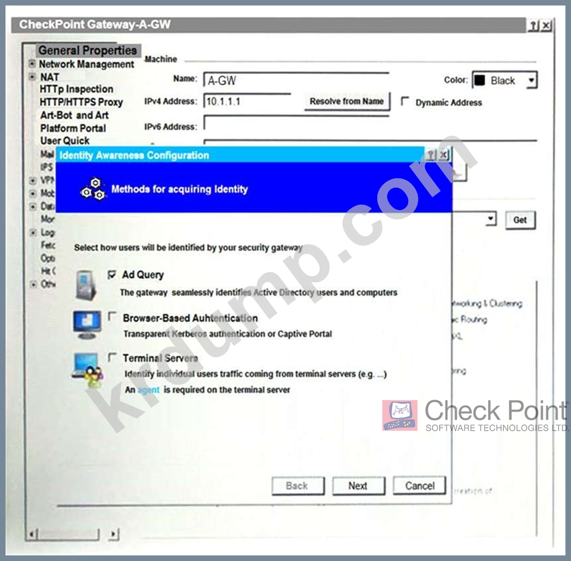다음 그림에서 관리자는 IAP(Identity Awareness)를 구성합니다.