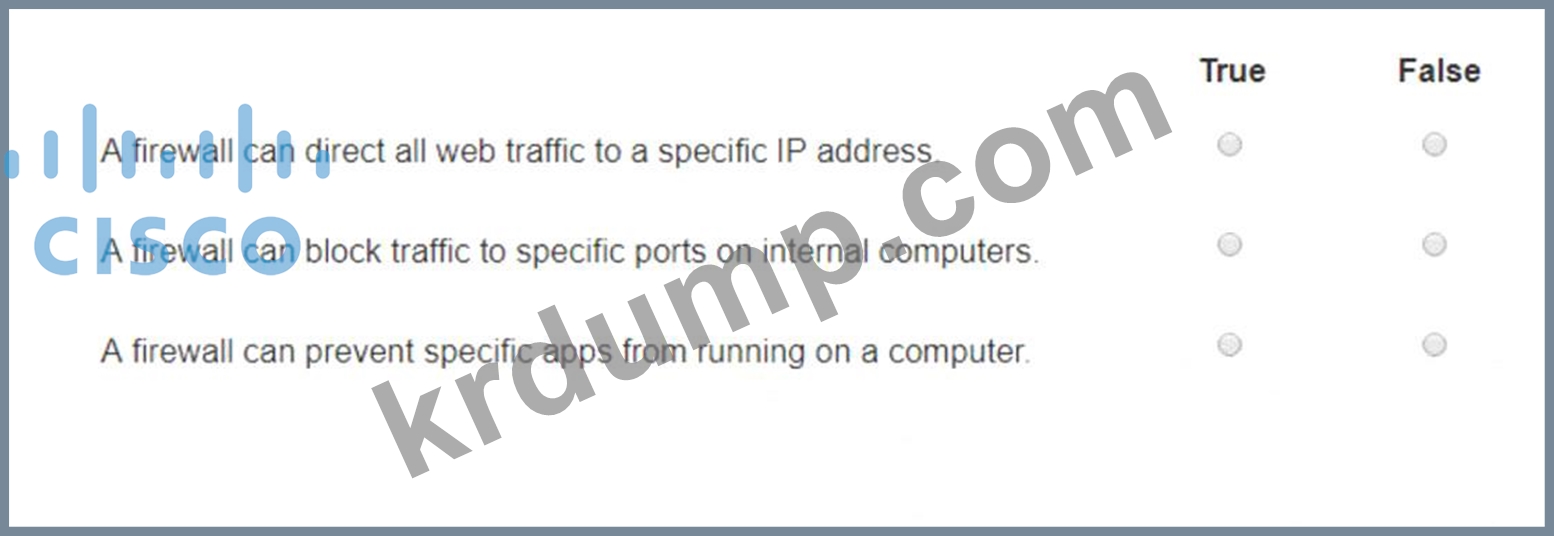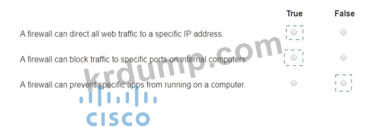 방화벽에 대한 각 진술에 대해 참 또는 거짓을 선택하세요.