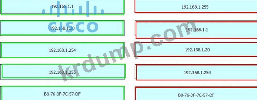 엔지니어는 팀 리더에게 다시 보고하기 위해 클라이언트 워크스테이션에서 네트워크 구성 매개변수를 확인하는 임무를 받습니다. 왼쪽의 노드 식별자를 오른쪽의 네트워크 매개변수로 끌어다 놓습니다.