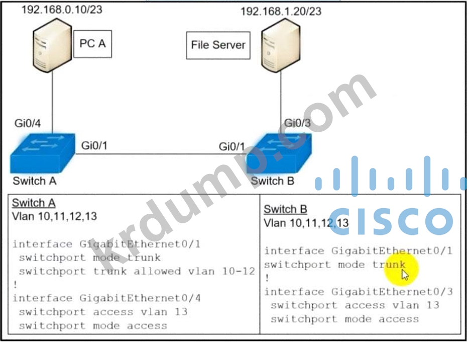 네트워크 엔지니어는 PC A와 파일 서버 간의 통신을 구성해야 합니다. 다른 통신에 대한 중단을 방지하려면 어떤 명령을 구성해야 합니까?