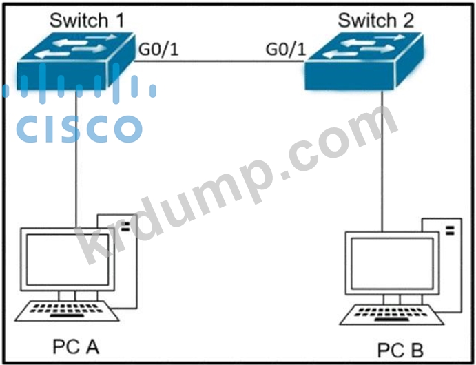 네트워크 관리자는 VLAN 67 트래픽이 스위치 1과 스위치 2 사이에서 태그가 지정되지 않고 다른 모든 VLAN은 태그가 지정된 상태로 유지되기를 원합니다.
