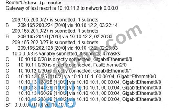 10.10.13.160 접두사로 가는 경로의 서브넷 마스크는 무엇입니까?