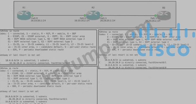 라우터 R1 Fa0/0이 라우터 R3 Fa0'1에 ping을 보낼 수 없습니다. 구성 문제를 해결하려면 라우터 R1에서 어떤 조치를 취해야 합니까?