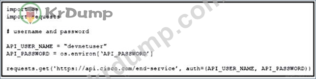 An engineer must authorize a REST API call. The API password is "Cisco123!". Which Bash command must be placed in the code to authorize the call?