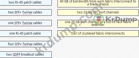 You ace evaluating Ethernet connectivity options for a data center design. Drag and drop the cabling options from the left onto the correct connectivity designs on the right. Not all options are used.