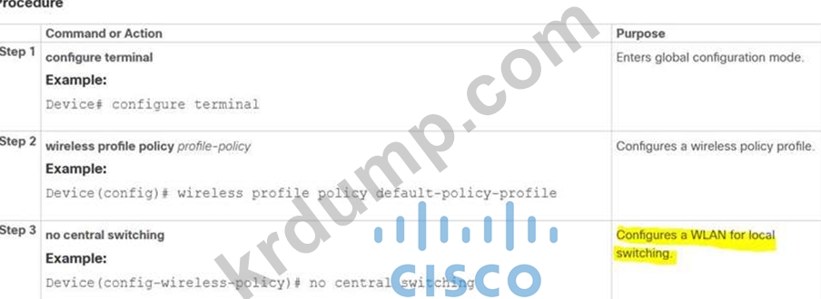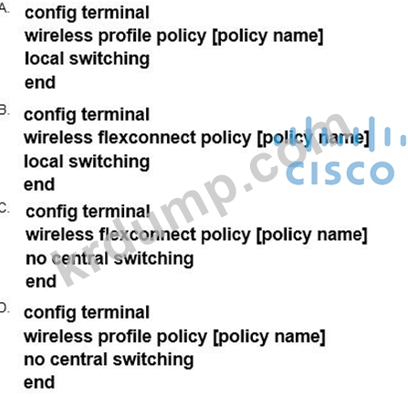 클라이언트 트래픽이 AP 스위치 포트에서 네트워크로 들어가도록 Cisco Catalyst 9800 Series Wireless Controller를 구성하는 명령 세트는 무엇입니까?
