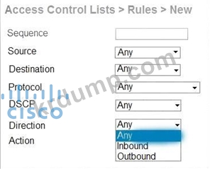 엔지니어가 WLC CPU에 대한 일부 트래픽을 제한하기 위해 ACL을 생성하고 있습니다. 방향 드롭다운 목록에서 어떤 항목을 선택해야 합니까?