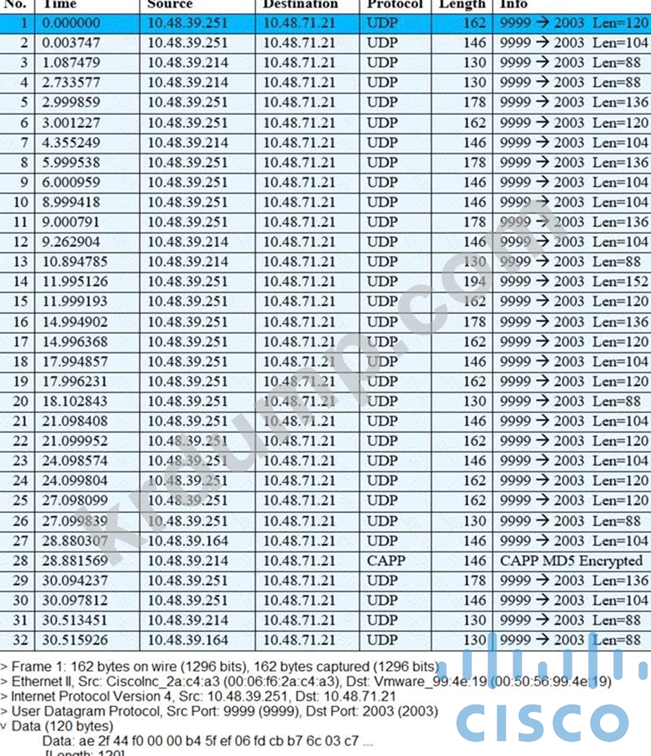 이미지는 Cisco CMX 서버의 CLI에서 가져온 패킷 캡처를 보여줍니다. WLC에서 서버로 들어오는 UDP 트래픽을 보여줍니다. 캡처는 무엇을 증명합니까?