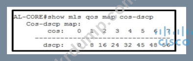 전시를 참고하세요. 음성 트래픽이 네트워크를 통과할 때 올바르게 태그가 지정되도록 하려면 어떤 COS에서 DSCP로의 맵을 수정해야 합니까?