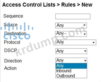 엔지니어가 WLC CPU에 대한 일부 트래픽을 제한하기 위해 ACL을 생성하고 있습니다. 방향 드롭다운 목록에서 어떤 항목을 선택해야 합니까?