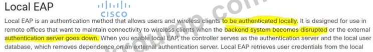 엔지니어가 802.1x 사용자 인증을 수행하도록 무선 LAN 컨트롤러를 구성합니다. WLC가 RADIUS와 통신할 수 없는 경우에도 클라이언트 장치가 무선에 연결할 수 있도록 하려면 어떤 구성을 활성화해야 합니까?