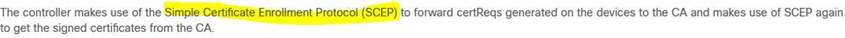 엔지니어는 Cisco Catalyst 9800 Series Wireless Controller에서 인증서를 프로비저닝해야 합니다. 고객이 타사 CA 서버를 사용합니다. 인증서를 요청하고 설치하려면 컨트롤러와 CA 서버 간에 어떤 프로토콜을 사용해야 합니까?