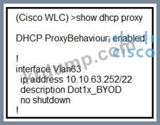 전시를 참고하세요. 네트워크 관리자는 2개의 ISE 서버(10.3.10.101 및 10.3.10.102)에 DHCP 프로파일러 서비스를 배포합니다. VLAN63의 WLAN에 연결하는 모든 BYOD 장치가 잘못 프로파일링되었으며 알 수 없는 프로파일링된 끝점으로 할당되었습니다. Cisco 권장 사항에 따라 문제를 효율적으로 수정하는 작업은 무엇입니까?