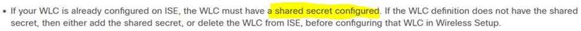 Cisco WLC가 네트워크 및 Cisco ISE에 네트워크 장치로 추가되었지만 인증이 실패합니다.